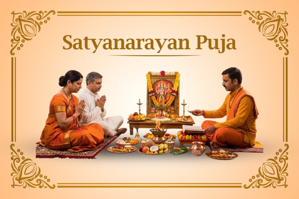 The ritual involves the recitation of the Satyanarayan Katha along with offerings to Lord Vishnu.